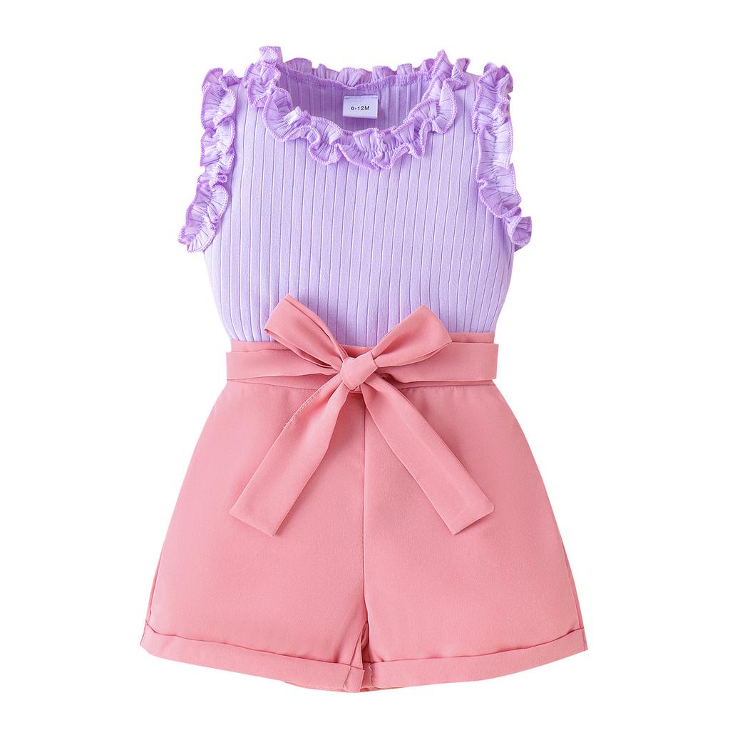 Модный костюм для девочек, весенне-летний детский повседневный милый кружевной жилет + однотонные шорты с поясом — купить товар онлайн с бесплатной доставкой по всему миру!