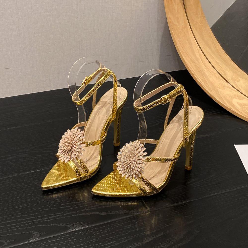 Новые женские сандалии цветные водные бриллианты цветок тонкий высокий каблук открытый носок классические золотые банкетные туфли