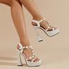 Летние женские босоножки на высоком каблуке с квадратным носком и ремешком на щиколотке, водонепроницаемые, с заклепками и пряжкой