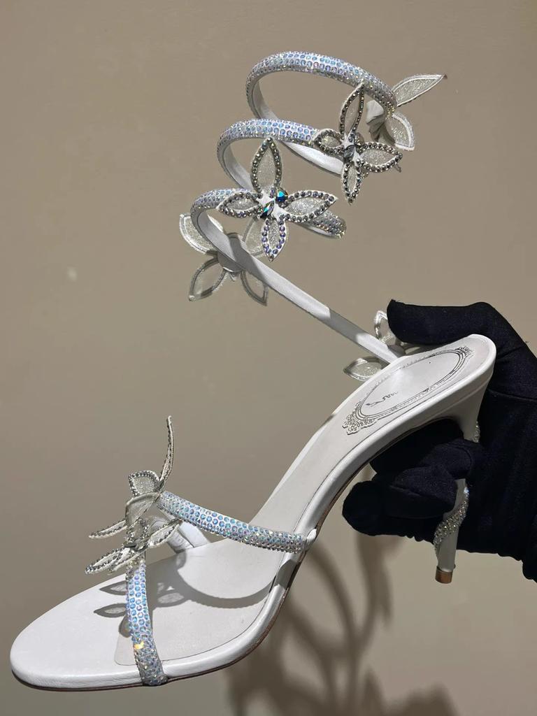 Xibeilove Сексуальные сандалии с бабочкой и ремешком на щиколотке с кристаллами, женская мода, туфли на шпильках с открытым носком, туфли на высоком каблуке для банкета и вечеринки