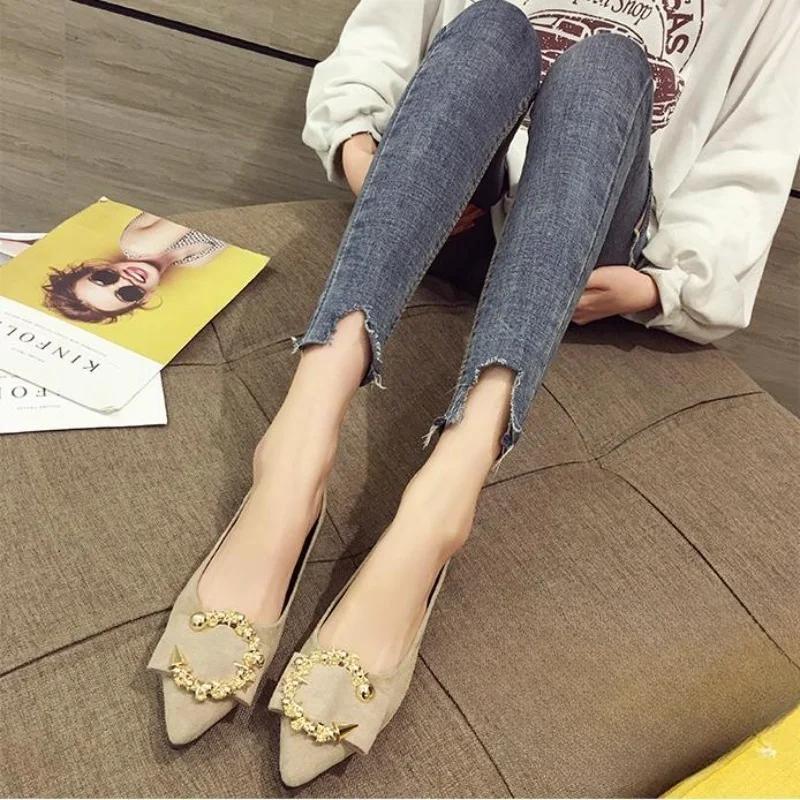 Сексуальные и элегантные черные туфли на низком каблуке с острым носком для женщин, новые осенние модные удобные повседневные туфли на плоской подошве без застежек