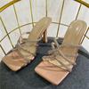 Liyke/пикантные шлепанцы на высоком каблуке, женские летние модные шлепанцы с узкими ремешками и кристаллами, квадратные шлепанцы с открытым носком, вечерние сандалии-мюли для зачистки