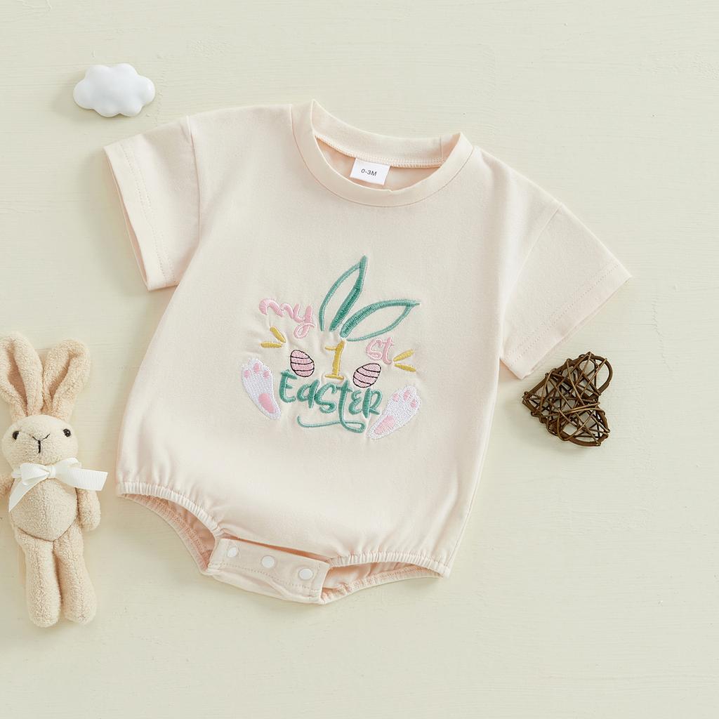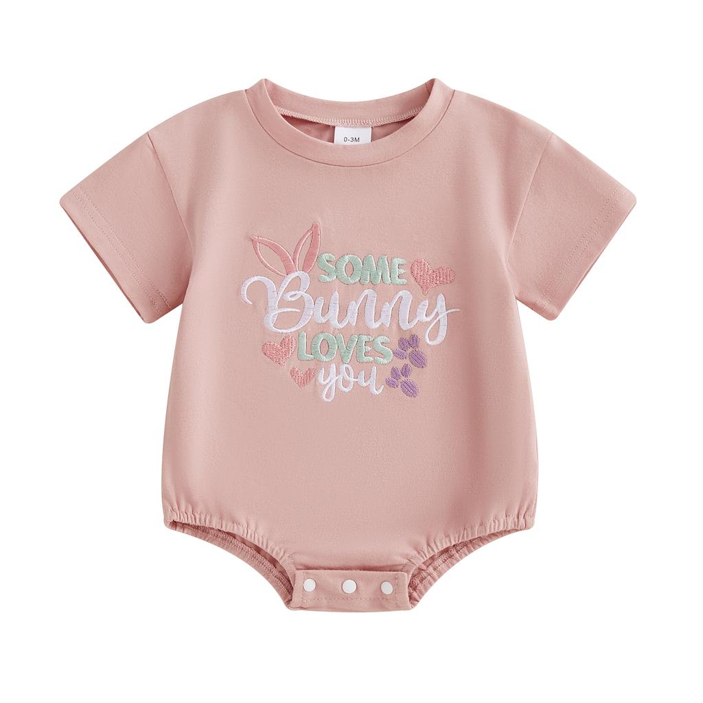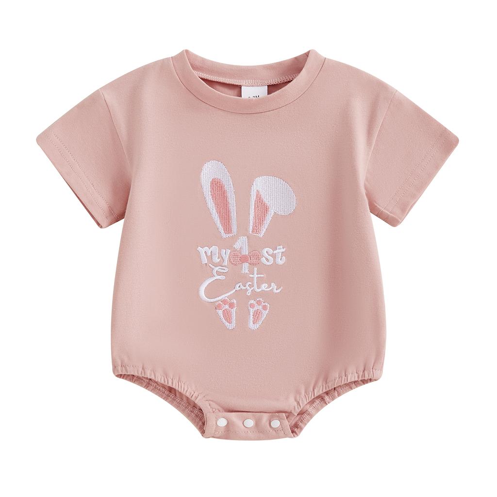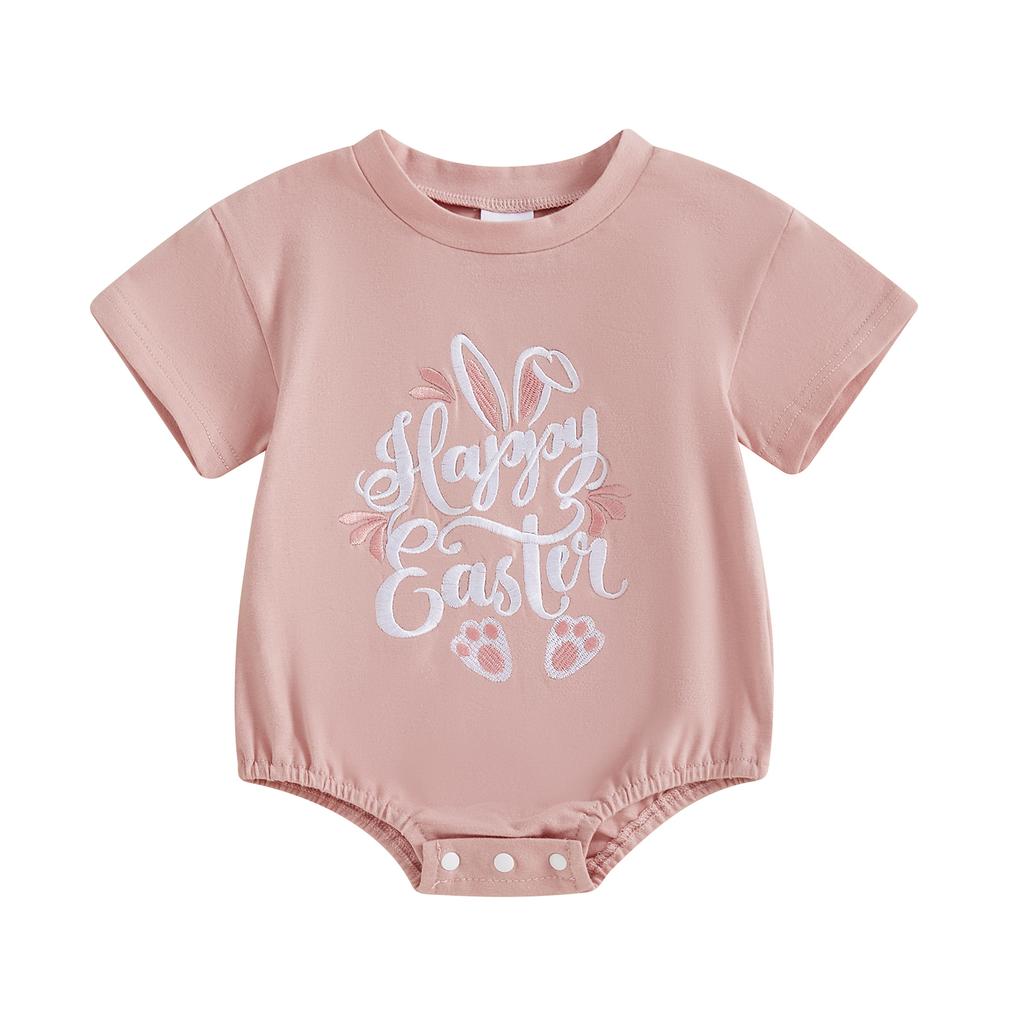 Детский пасхальный комбинезон для девочек, повседневный комбинезон с короткими рукавами и вышивкой в виде кролика для новорожденных, милая одежда для малышей