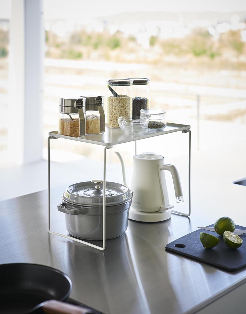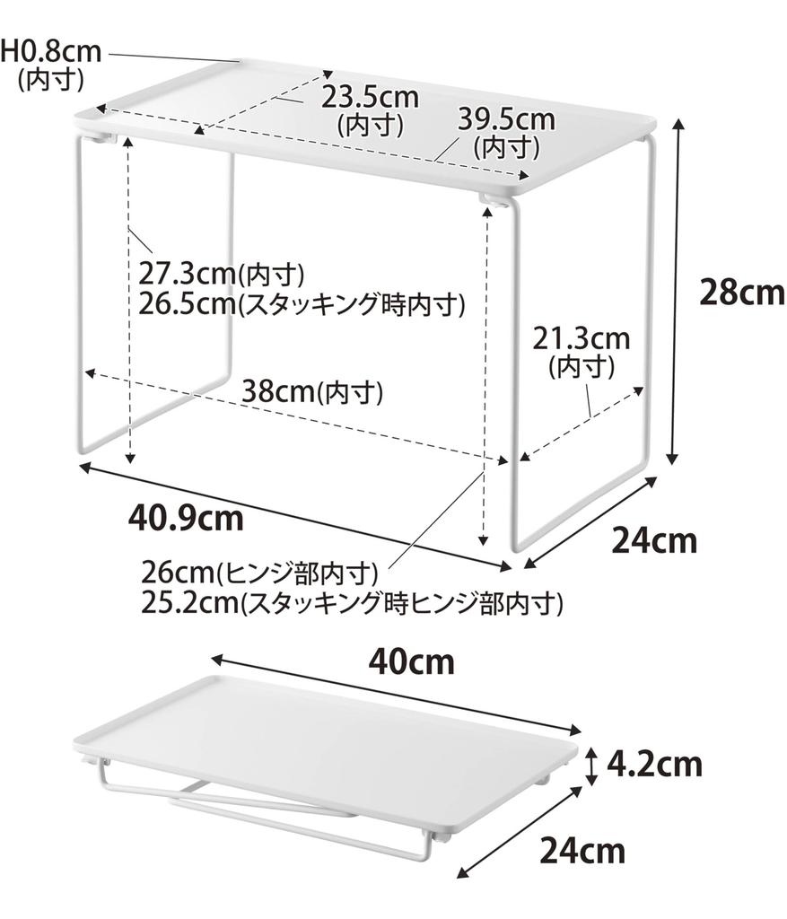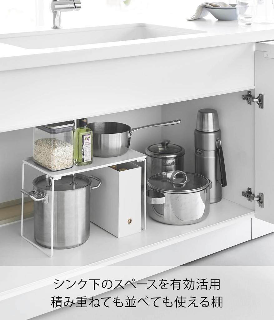 Yamazaki Складная Штабелируемая Полка Большая Белая Когда в Ш40.9 x Г24 x В28см Tower Штабелируемое Хранение Под Раковиной Кухонная Полка 1369 Использовать Ш40.9
