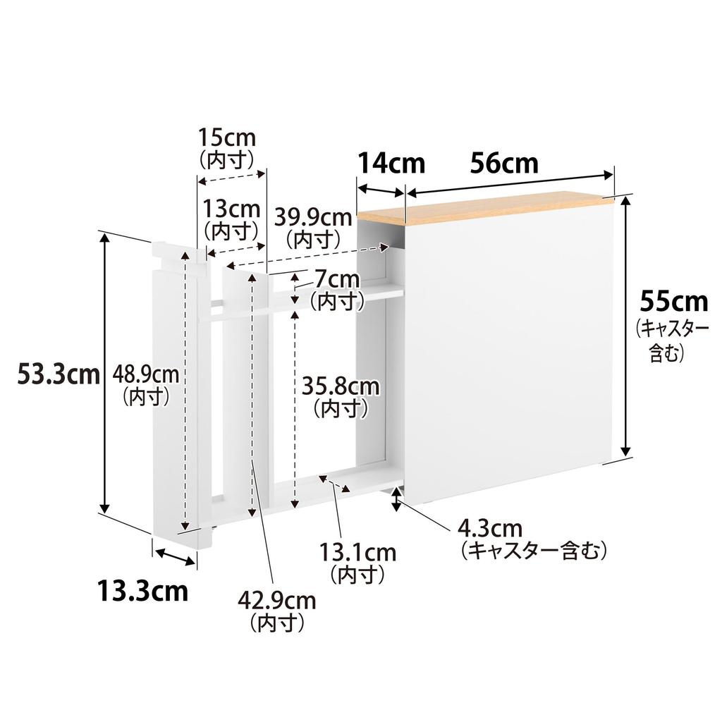 Yamazaki Jitsugyo Скрытый туалетный ящик для хранения Белый Ш14 x Г56 x В55 Tower Хранение для туалета Стеллаж для туалета Узкий 1426 [Готовый продукт] (Включая