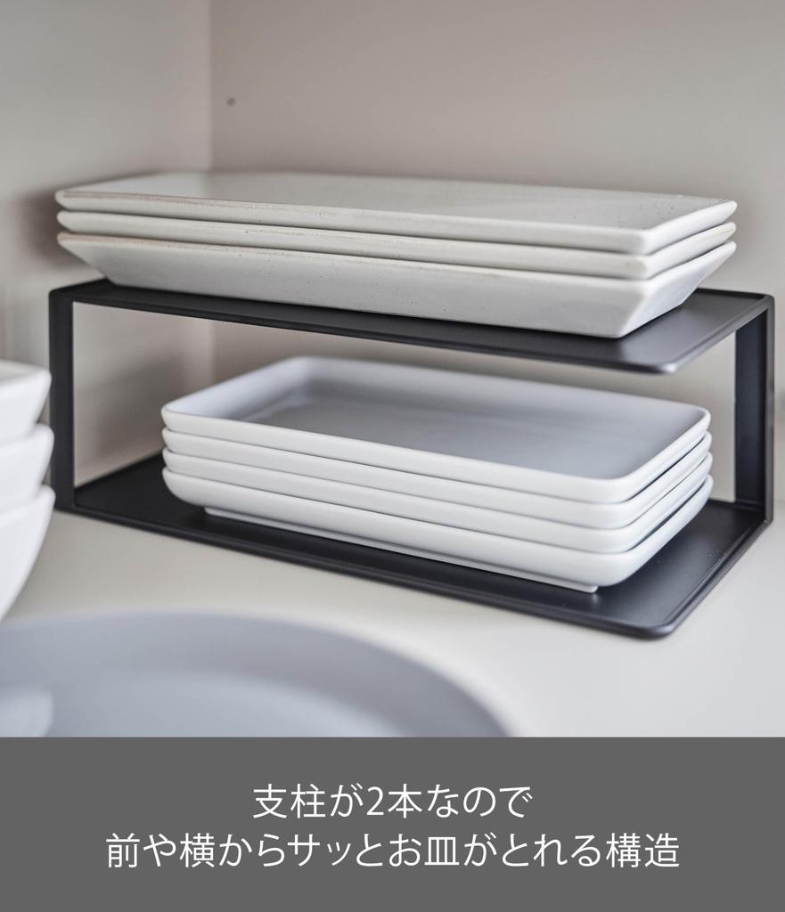 Yamazaki Jitsugyo 5642 Длинная полка для тарелок, 2 Ш30XГ15XВ10 см, стойка для хранения тарелок, ярусная, черная, прибл.