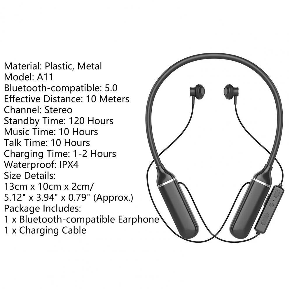A11 Наушники с шейным ободом, магнитные, с длительным временем ожидания, бас, стерео, беспроводная Bluetooth-совместимая гарнитура с микрофоном для спорта