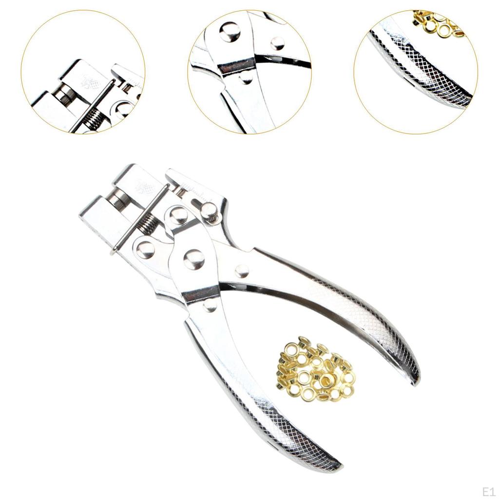 - 【Многофункциональный дизайн】: В комплект входят 1 плоскогубцы и 100 шт. металлических люверсов.(случайные цвета). Этот инструмент можно использовать для пробивания отверстий в таких материалах, как ремни, пояса, кожа, бумага и металл.. Имеет широкий спектр применения