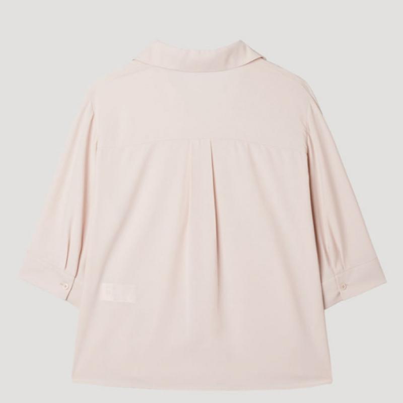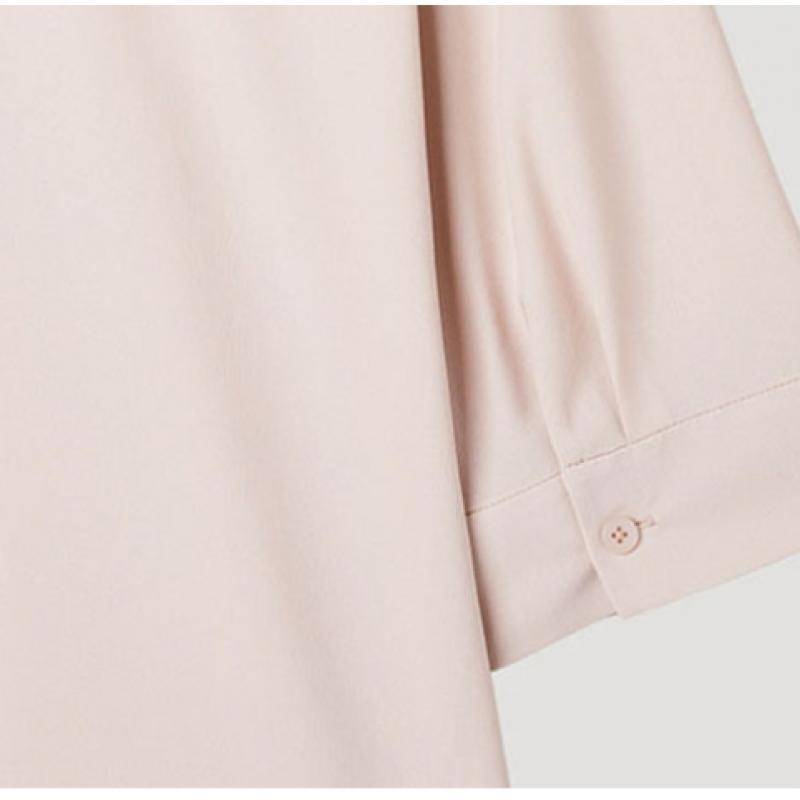 The Open Collar Slit Blouse (model SWWSTP22020) is crafted from 100% polyester, featuring a lightweight and breathable fabric that ensures comfort throughout the day. This blouse is designed with a relaxed silhouette and an elegant open collar, matched with subtle slits for extra style. It is available in three sizes: 55, 66, and 77, accommodating various body types.