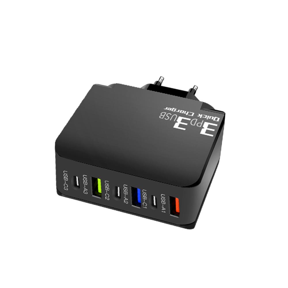 65 Вт 6-портовое USB-зарядное устройство Type C с быстрой зарядкой QC3.0, дорожное зарядное устройство для iPhone, Samsung, Xiaomi, адаптер для мобильного телефона, вилка ЕС и США