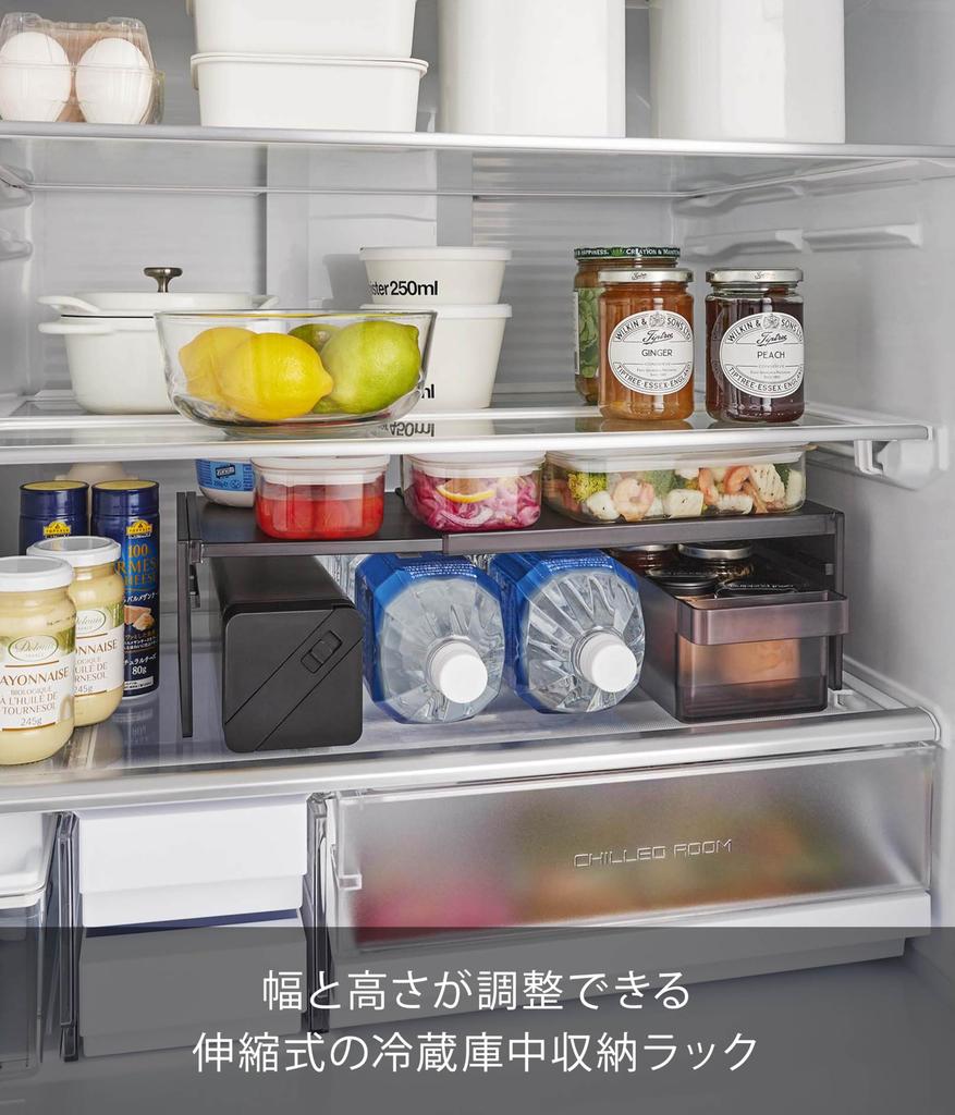 Телескопическая полка для хранения в холодильнике Yamazaki Jitsugyo 8066, черная, диаметр 20 х высота, регулируемая по ширине и высоте полка для хранения, стеллаж для уборки, прибл.