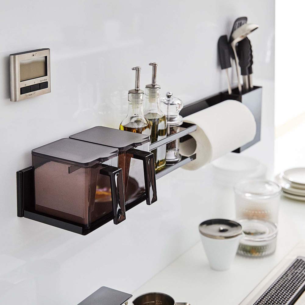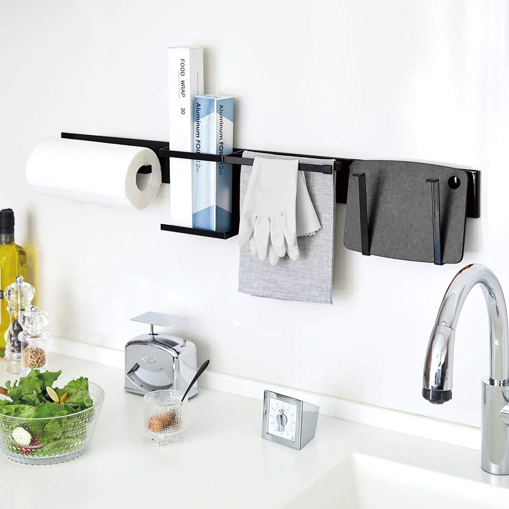 Yamazaki Jitsugyo 5101 кухонная настенная барная стойка широкая черная башня настенная система хранения бар крепление шурупами по дереву прибл.. Ш84XГ1XВ7.3см