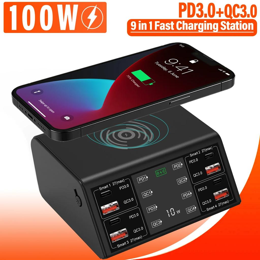 Наименование товара: 4 qc + 4 pd 100w 8-контактная USB-зарядная станция с беспроводной зарядкой