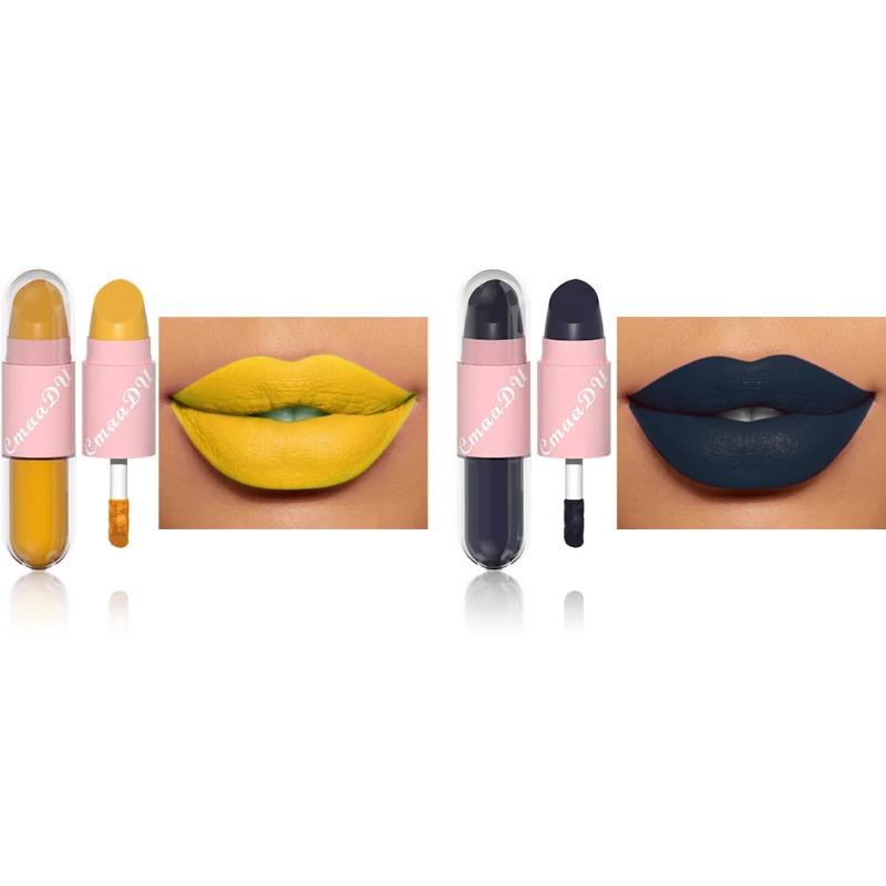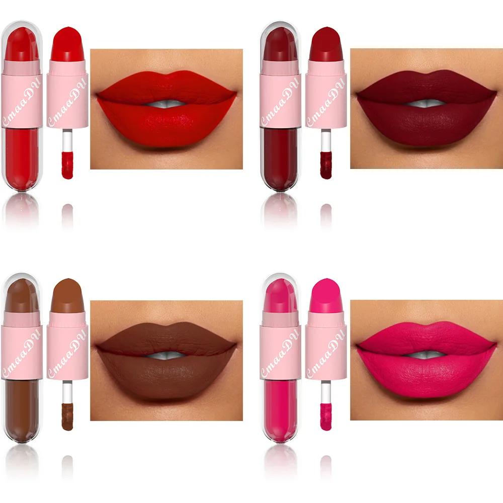 18 цветов 2 в 1 матовая помада жидкая фиолетовая губная помада двухкомпонентная косметика для губ стойкая водостойкая бархатная сексуальная темно-красная помада