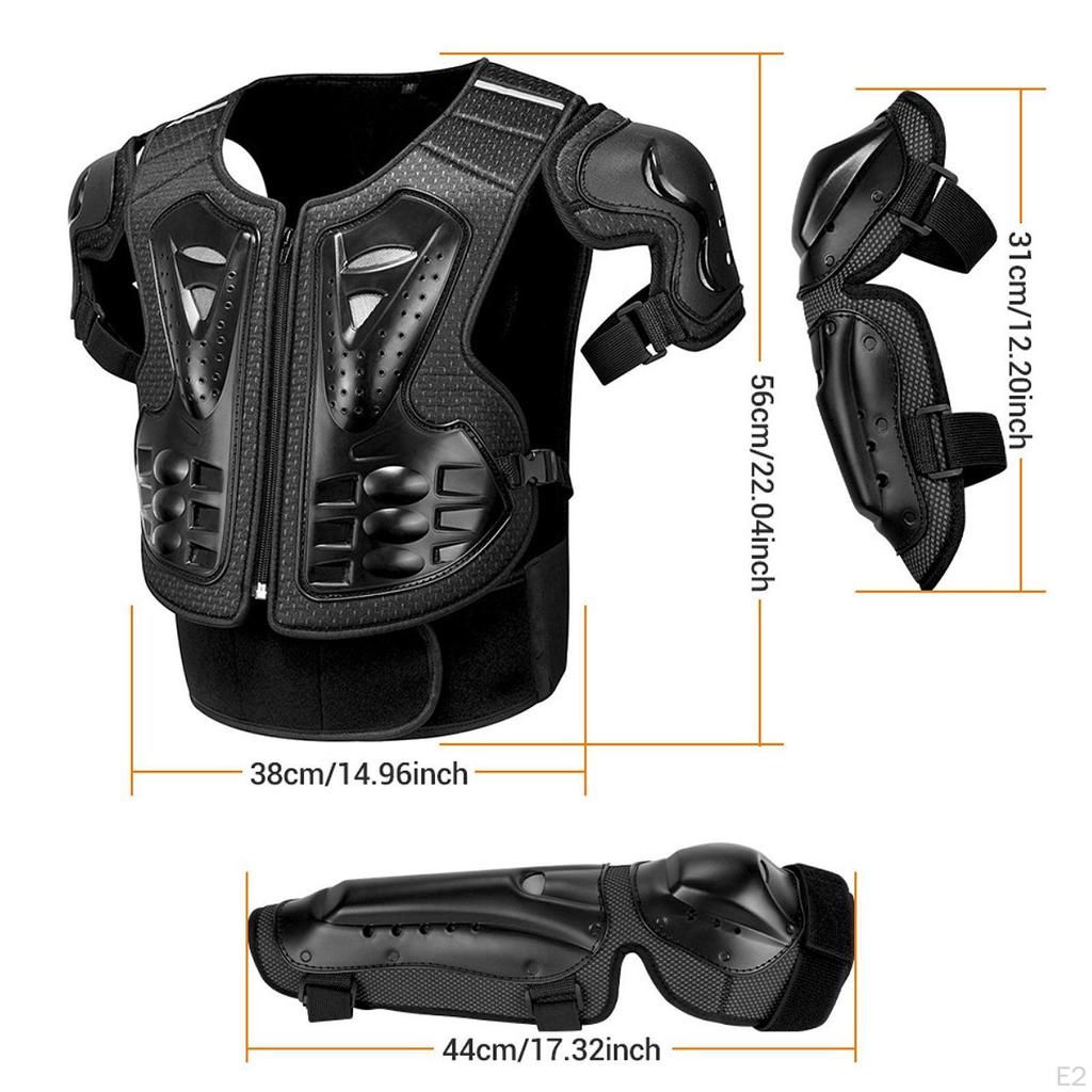 Костюм охрана: Защита груди 38 см x 56 см/14,96 дюйма x 22,05 дюйма, длина наколенника 31 см/12,20 дюйма, длина налокотника 31 см/12,20 дюйма