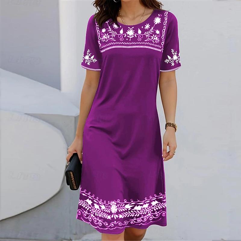Модное женское свободное простое ретро-стиль с принтом в виде О-образного выреза и коротким рукавом с принтом листьев, свободное уличное платье А-силуэта — купить товар онлайн с бесплатной доставкой по всему миру!