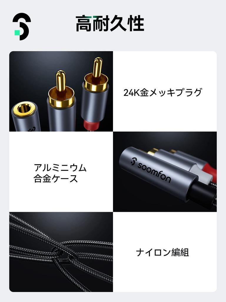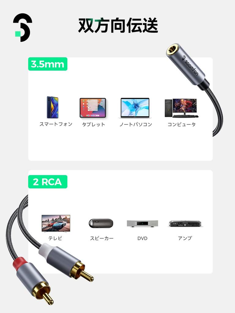 [Wide Compatibility] This is an audio conversion cable that sends audio from 3.5mm jacks such as smartphones, tablets, PCs, DVDs, etc. to amplifiers and speakers with RCA red and white terminals. 3.5mm: Compatible with smartphones, tablets, MP3 players, CD players, computers, car AUX, etc. 2RCA (Red/White): Compatible with speakers, stereo receivers, monitors, TVs, amplifiers.