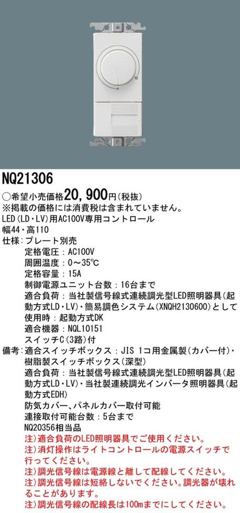 Panasonic Выключатель управления освещением серии Cosmo NQ21306 Wide 21 100 В Только ширина 44 мм x высота 110 мм