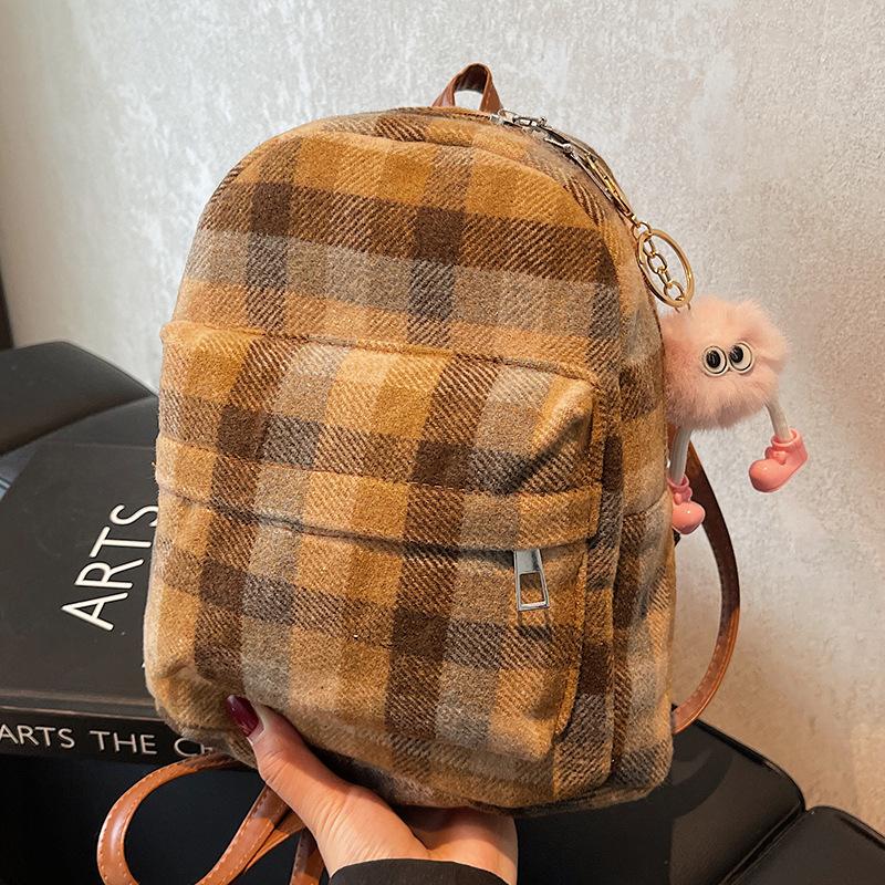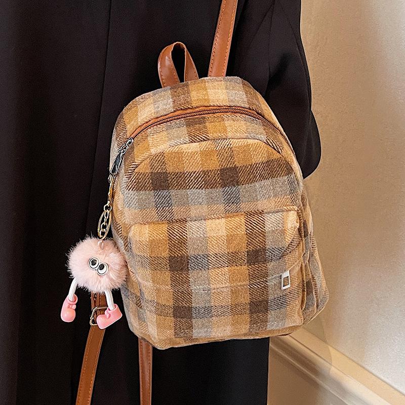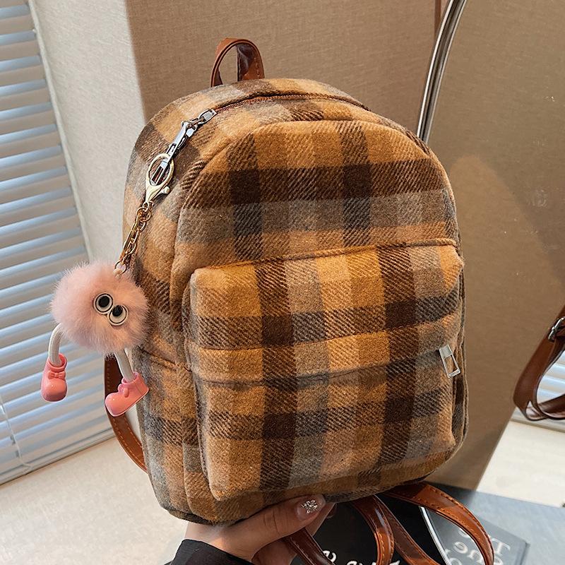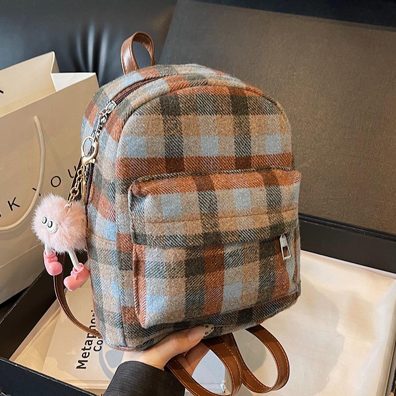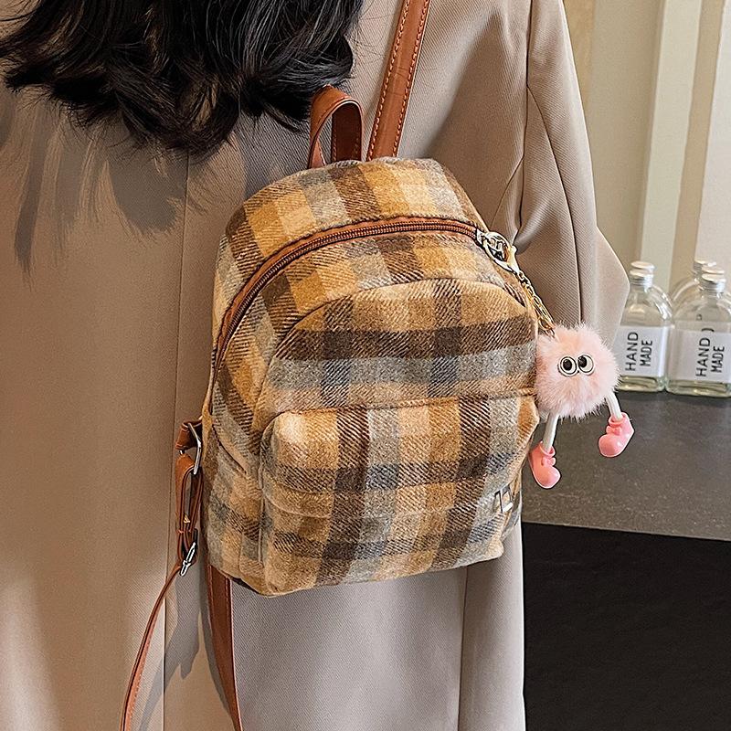 Милый мультяшный рюкзак для женщин в осеннем новом стиле в студенческом стиле, повседневная универсальная клетчатая сумка, мини-рюкзак
