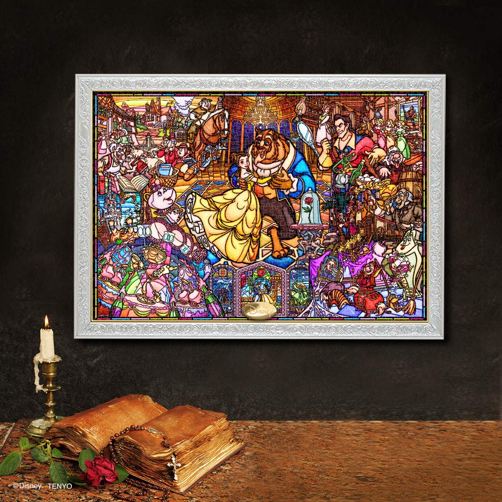 Tenyo в пазле из 1000 элементов чистого белого цвета с витражным стеклом Disney Beauty and the Beast Story, в комплекте сервисная карточка [Сделано в Японии] (51х73,5см)
