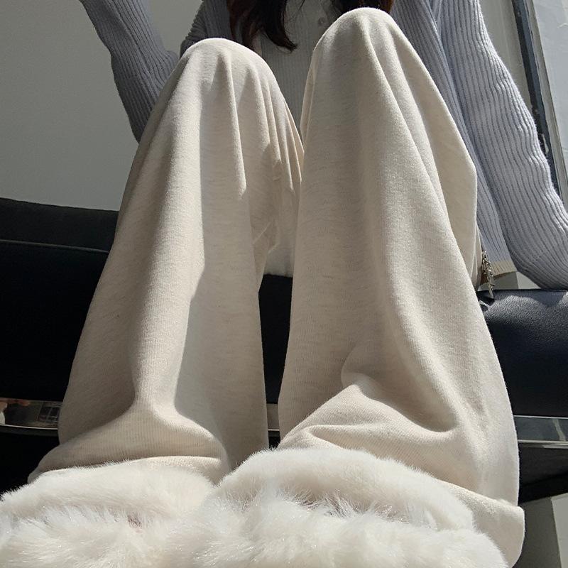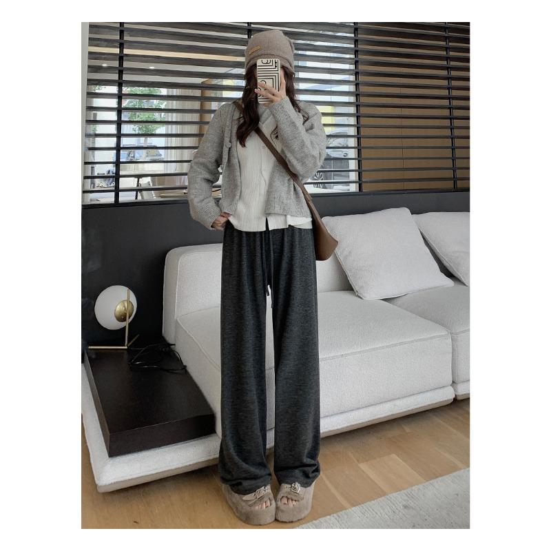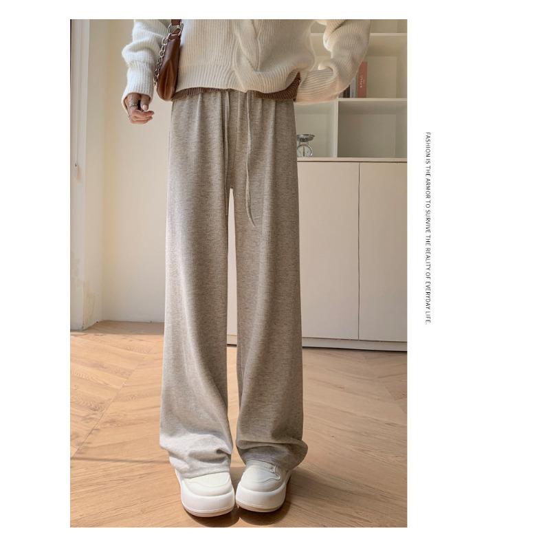 Широкие брюки женские осенне-зимние новые узкие мягкие вощеные повседневные прямые брюки с высокой талией