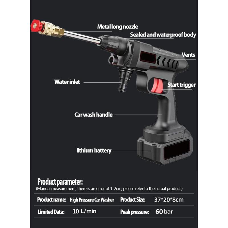 300 Вт беспроводной пистолет для мойки автомобилей из нержавеющей стали высокого давления, инструмент для чистки пенного пистолета, беспроводная перезаряжаемая конструкция для мойки автомобилей
