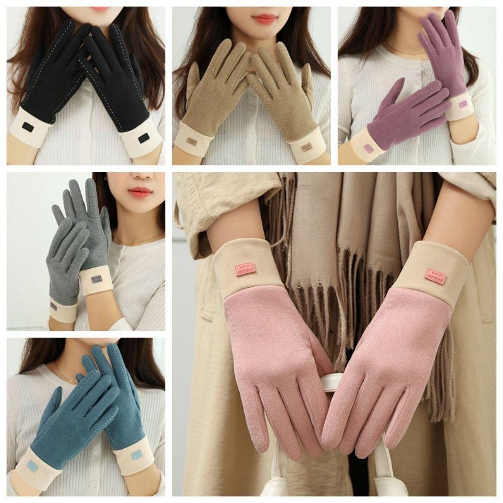 Solid Color Winter Velvet Gloves Thicken Gloves Retro Plush Mittens Riding