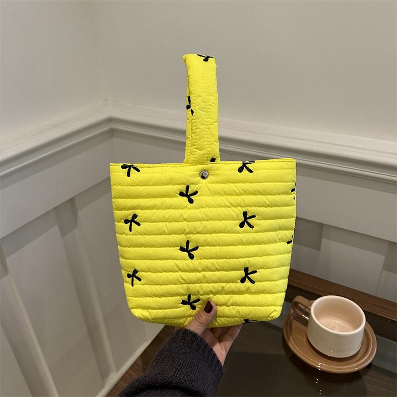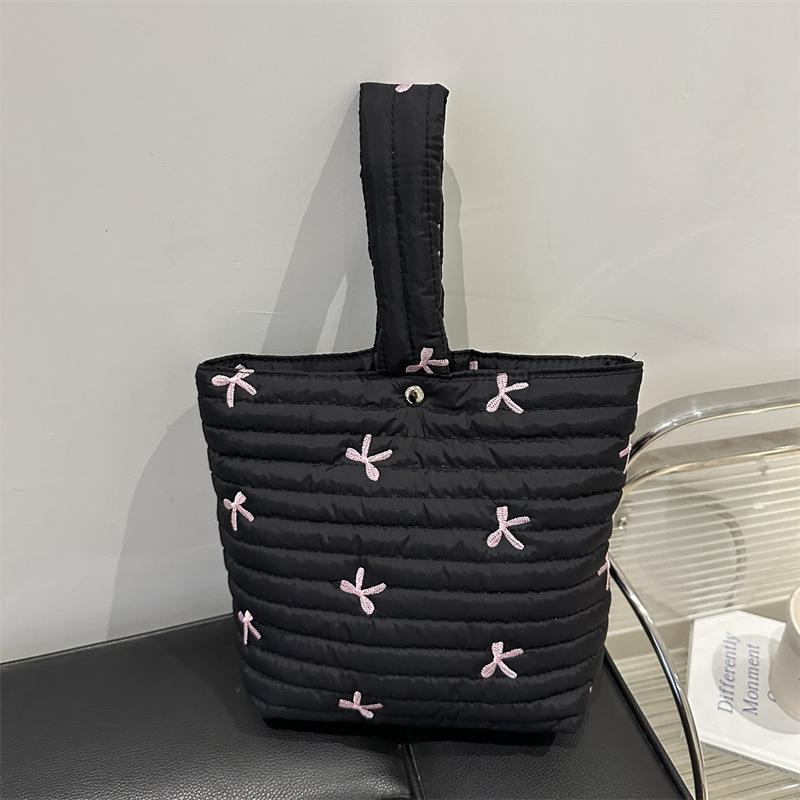 Модная и повседневная сумка-корзина для овощей с вышитым бантом для женщин, новый стиль, симпатичная портативная сумка-ведро для женщин