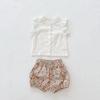 Летний комплект для девочки 2025 года: топ на пуговицах с пышными рукавами и шорты с цветочным принтом