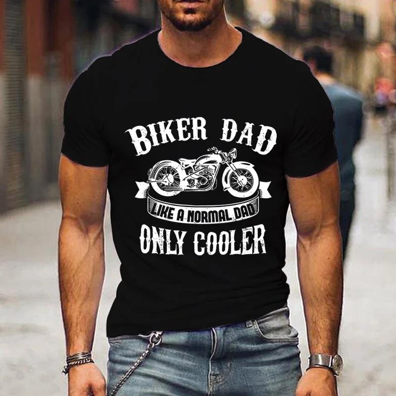 Футболка с графическим принтом Biker Dad Only Cooler для мужчин, летняя черная футболка с коротким рукавом в винтажном стиле, забавная модная футболка ко Дню отца для мужчин