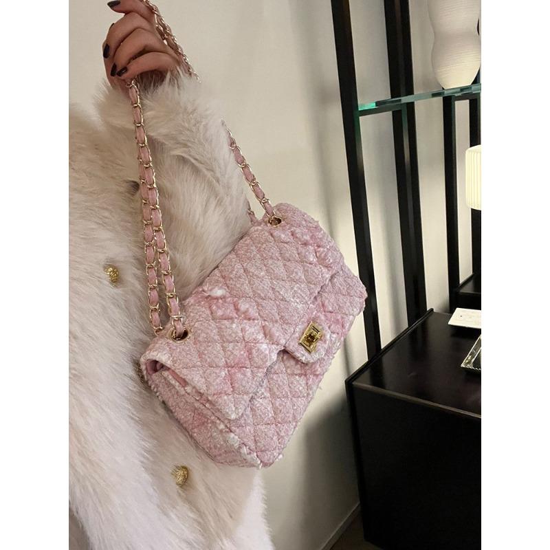 Маленькая сумка-клык, универсальная маленькая ароматная розовая шерстяная сумка-цепочка на одно плечо, сумка подмышкой, тканая сумка премиум-класса, новый стиль 2025 года