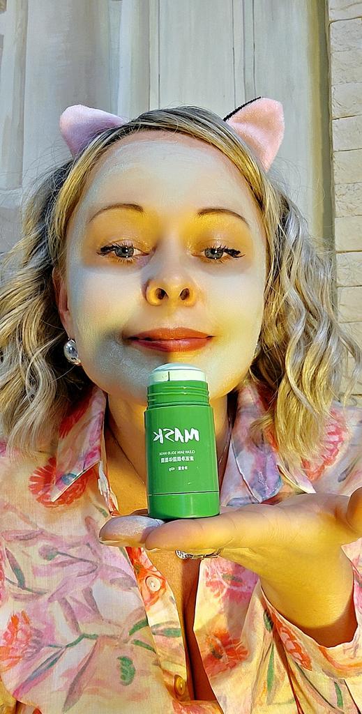 Как же провести день без косметических процедур)) и сегодня попробуем грязевую маску☘️ Так что перед вами не Шрек☺️, а я с зелёной маской))) Очень интересная маска, пришла в коробочке, запечатанной в слюду, внутри стик ( по механизму действия как клей-карандаш) с спрессованным средством для нанесения на кожу. Маска пахнет головокружительно вкусно и приятно травами, не резко, ооочень классно! Я готова нюхать и нюхать! Легко наносится на очищенную кожу лица на 10-15 минут, избегая области вокруг глаз. Сначала наносится как мягкое средство, но тут же на лице оно подсыхает и напоминает маску из глины. Во время использования чувствуется подтяжка лица. Мне очень понравилось, что можно не использовать руки, аккуратно наносить маску с помощью стика. Хватит на много процедур, за одну использовала не так много. Смыла легко тёплой водой, кожа немного посветлела)) Ощущения приятные и комфортные)) Маска однозначно заслуживает внимания)) мне очень понравилась! Котику тоже приглянулась под цвет глаз)) От души рекомендую☘️🌼❤️