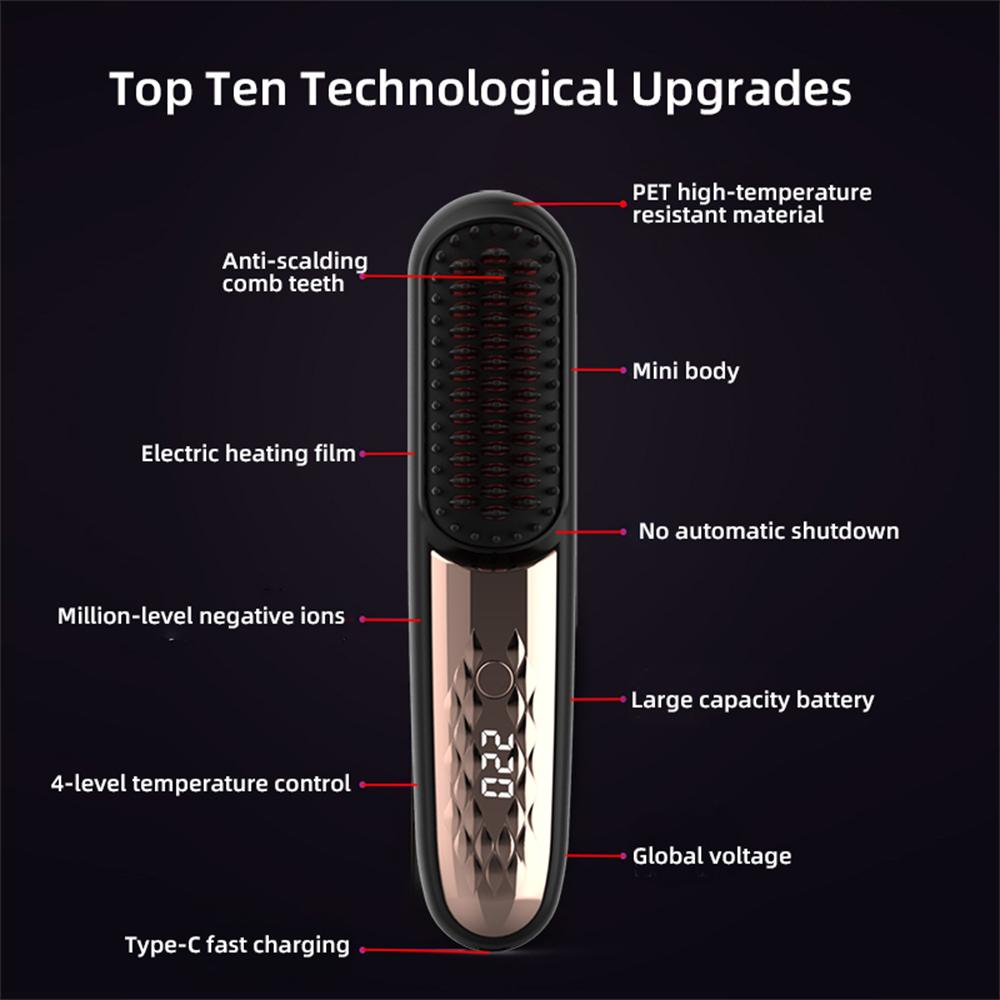 Беспроводная щетка для волос, выпрямитель, электрическая щетка с подогревом, отрицательные ионы, выпрямление волос, укладка, расческа, разглаживание, питание волос