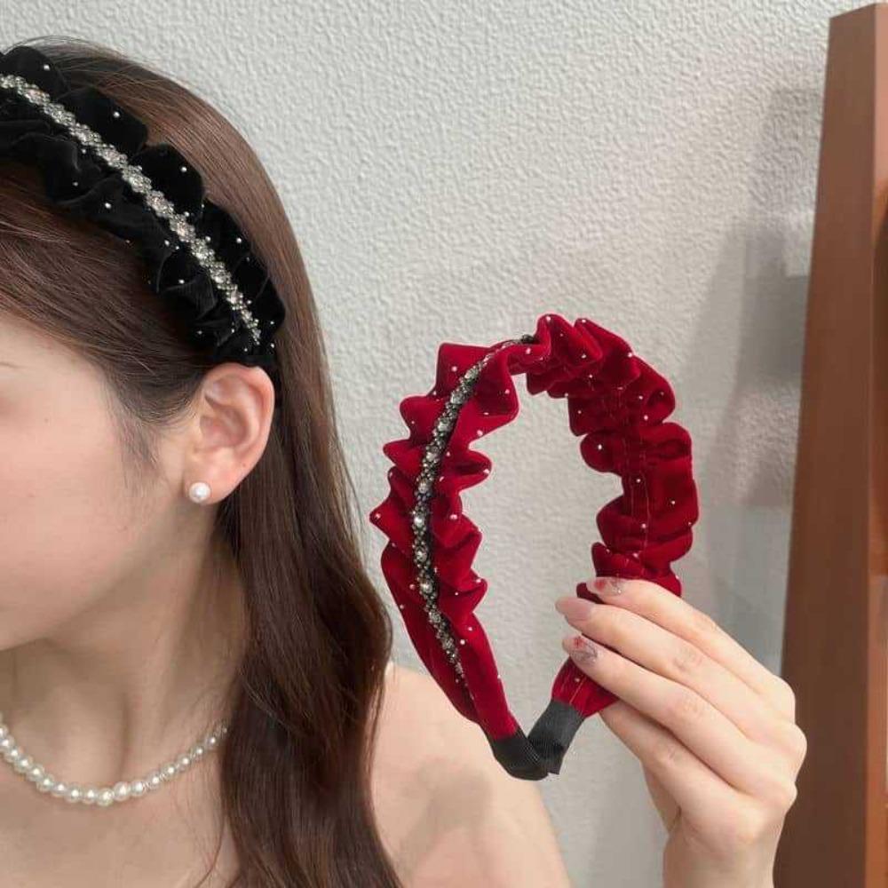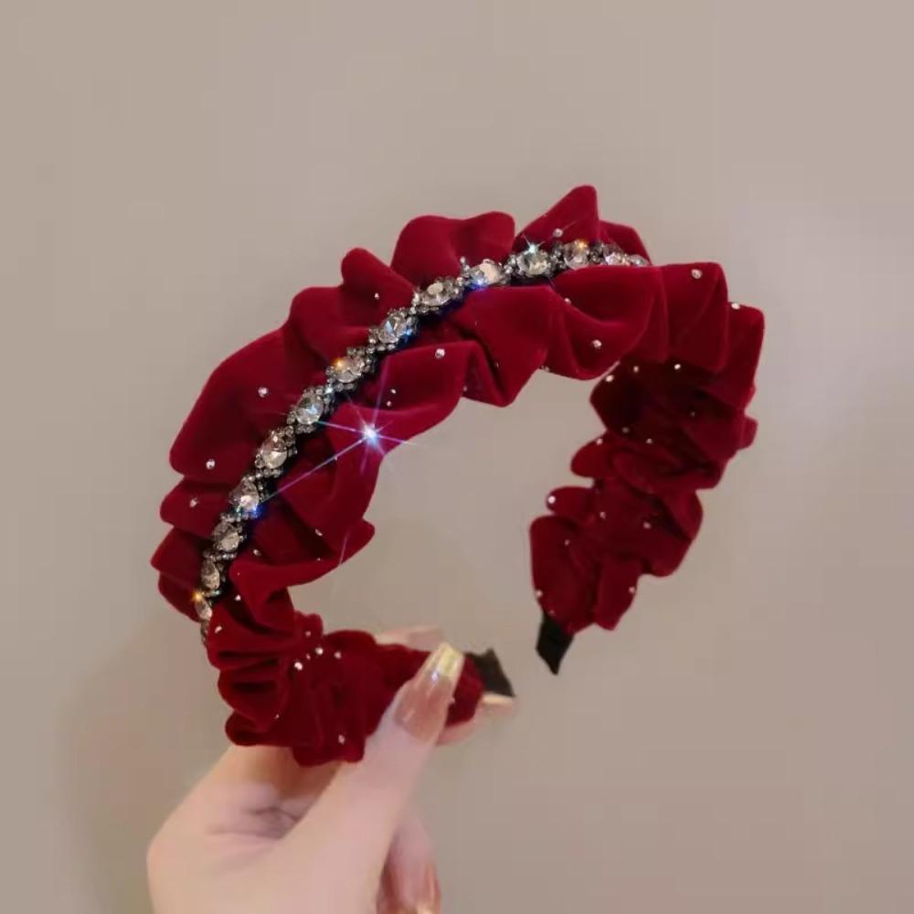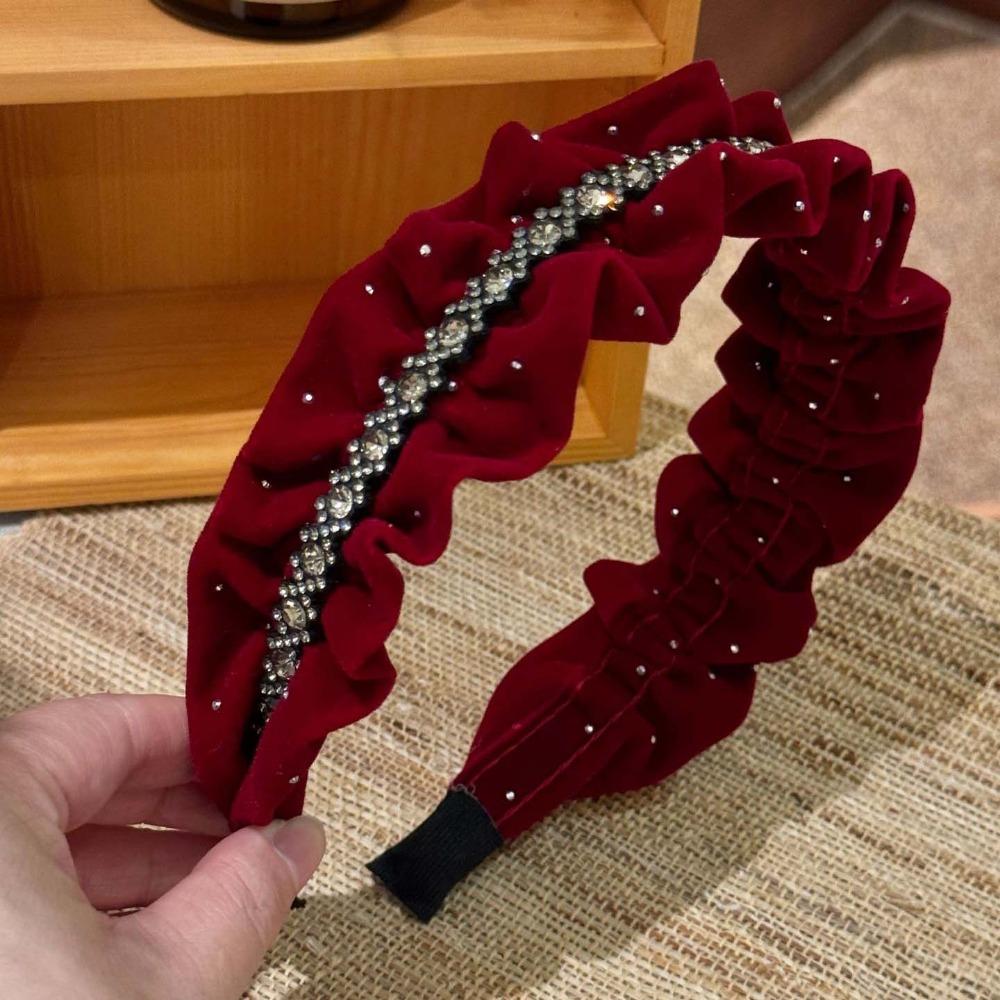 Французский стиль блестящий ободок со стразами милый женский ободок с пайетками бархатный плиссированный обруч для волос на каждый день