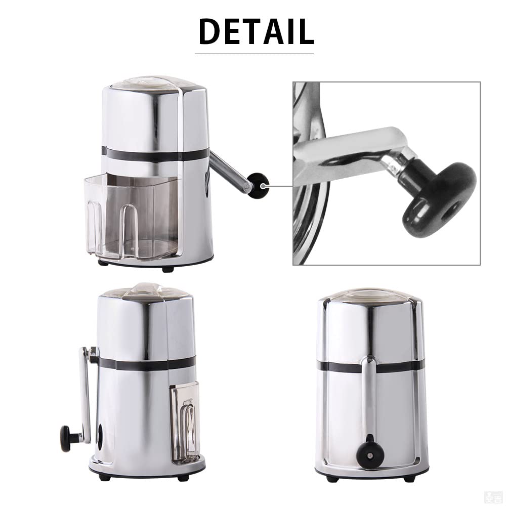 Беспроводной ручной тип, не требующий электричества. Легкий и компактный, его можно носить с собой куда угодно.. Просто добавьте кубики льда из ледогенератора, закройте крышку и поверните ручку, чтобы легко создать стильный колотый лед.. Для поворота требуется некоторое усилие, но при этом очень легко раздавить лед.. Если он тугой, то трюк заключается в том, чтобы повернуть его назад один раз, а затем повернуть его. Дизайн простой и стильный, что делает его стильным даже при размещении на столе или стойке.. Холодный кофе и холодный чай, подаваемые с дробленым льдом, являются исключительными.. Колотый лед можно использовать не только в коктейлях, но и в соках и холодном кофе для придания им другого вкуса! Для тех, кто хочет пить виски, бурбон или бренди с колотым льдом, хайболы, коктейли мохито и т. д.. Помимо соков, вина и напитков, вы также можете создавать прекрасные блюда и сашими.