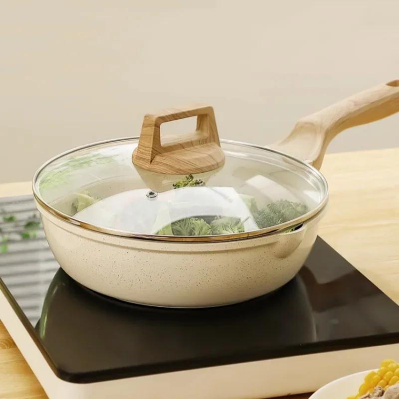 Сковорода с крышкой, антипригарная сковорода для омлета, сотейник с деревянной ручкой, для общего пользования, для газовой и индукционной плиты, кухонный аксессуар — купить товар онлайн с бесплатной доставкой до всему миру!