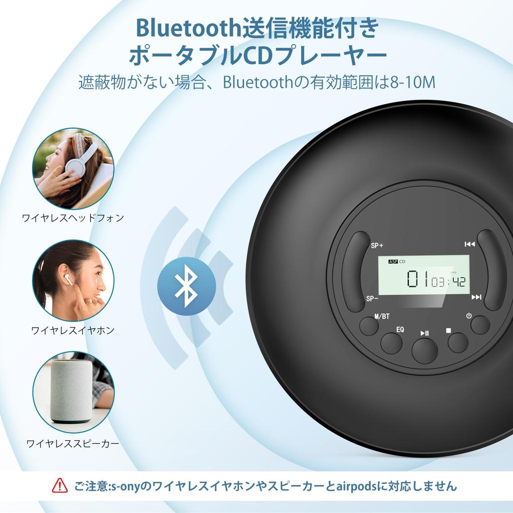 [Bluetooth CD-плеер] CD-плеер с функцией Bluetooth можно подключить не только к проводным наушникам, но и к беспроводным наушникам и динамикам для прослушивания компакт-дисков.. При отсутствии препятствий радиус действия Bluetooth может достигать 8–10 м, что позволяет свободно слушать любимую музыку даже в большом доме.. Пожалуйста, обрати внимание: Несовместимо с беспроводными наушниками и динамиками S-ony и AirPods.. )