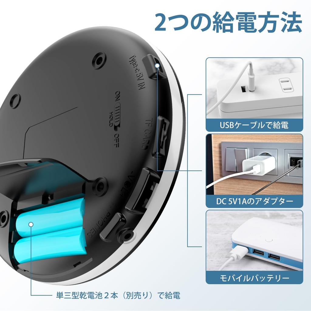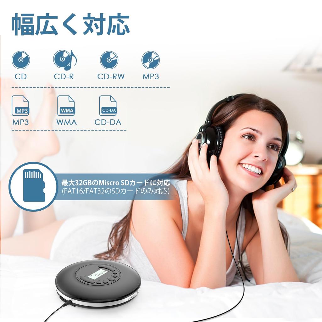 [Мини-CD-плеер, совместимый с картой Micro SD] Этот продукт поддерживает карты SD объемом до 32 ГБ, поэтому вы можете наслаждаться музыкой, загруженной на ваш смартфон или компьютер.. (уведомление: Поддерживаются только SD-карты FAT16/FAT32.. Карты SD NTFS не поддерживаются.) Кроме того, он имеет размер ладони и весит около 206 г, что делает его удобным для переноски.