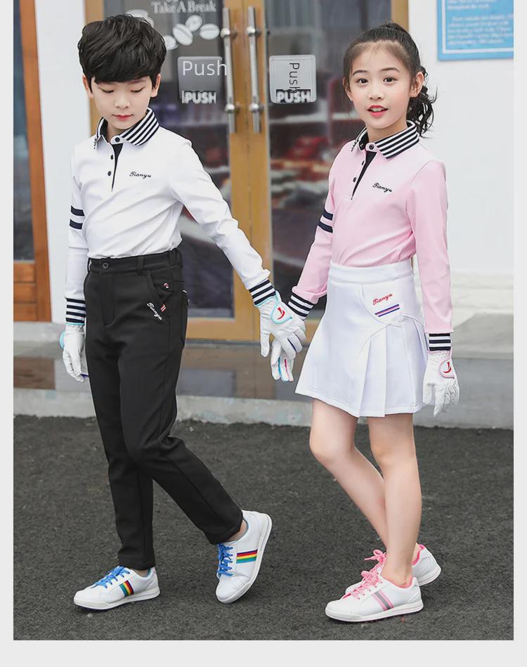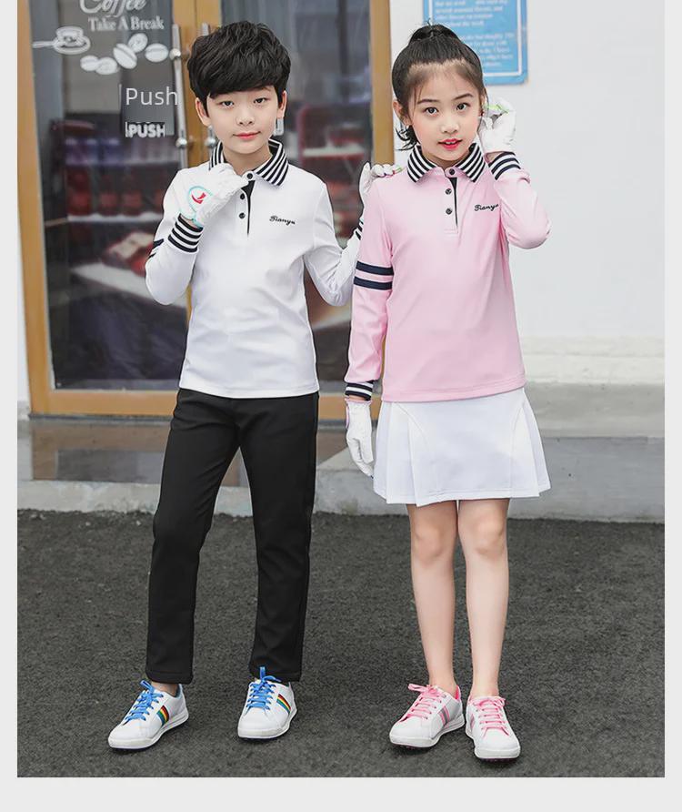 Детская футболка для гольфа Autumn - корейский облегающий крой, дышащая, с длинным рукавом, с лацканами для мальчиков и девочек