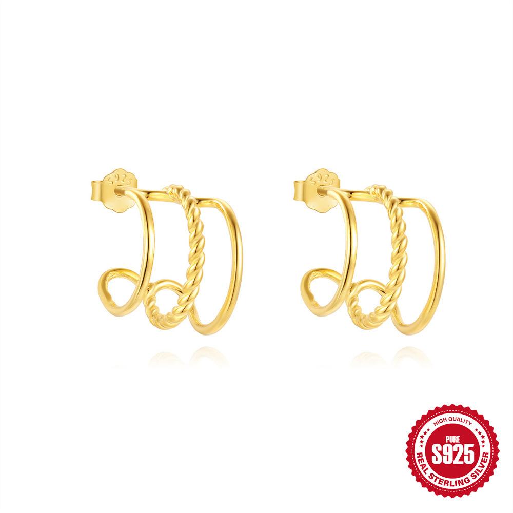 Ежедневные Универсальные S925 Чистое Персонализированное Дизайн Трехслойные C-образные Простые Модные Серьги-пусеты