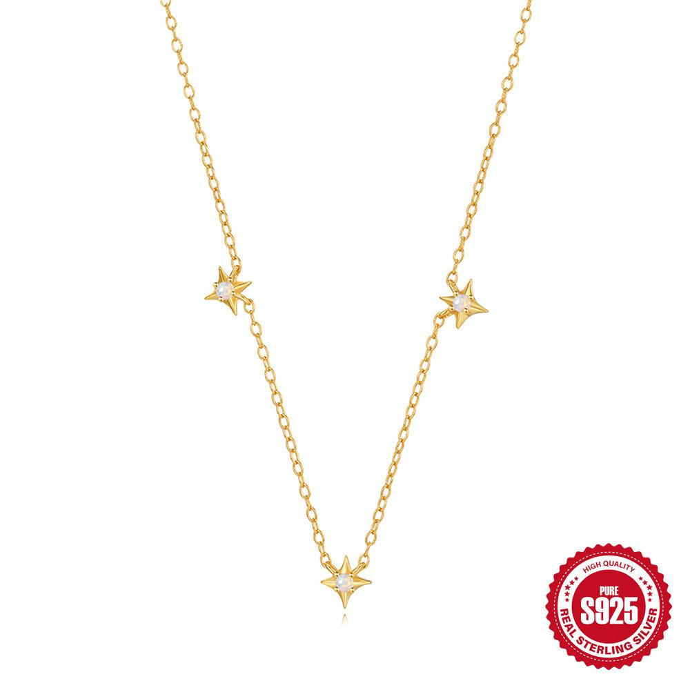 S925 Sterling Silver Daily Wear Wind Four Cornered Star Opal Tassel Versatile Necklace Clavicle Chain
