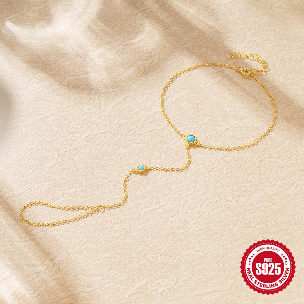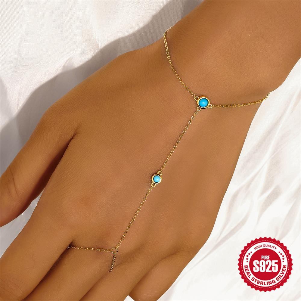 925 пробы стерлингового серебра ретро микро-инкрустированные бирюзовые украшения для рук женские кольца цепи базовый браслет на палец многослойный наборный браслет