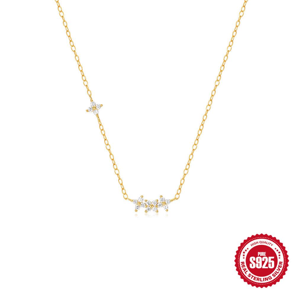 S925 стерлингового серебра простые лепестки с бриллиантами в форме ветра четыре лепестка ежедневно с женским ожерельем цепочка на ключицу