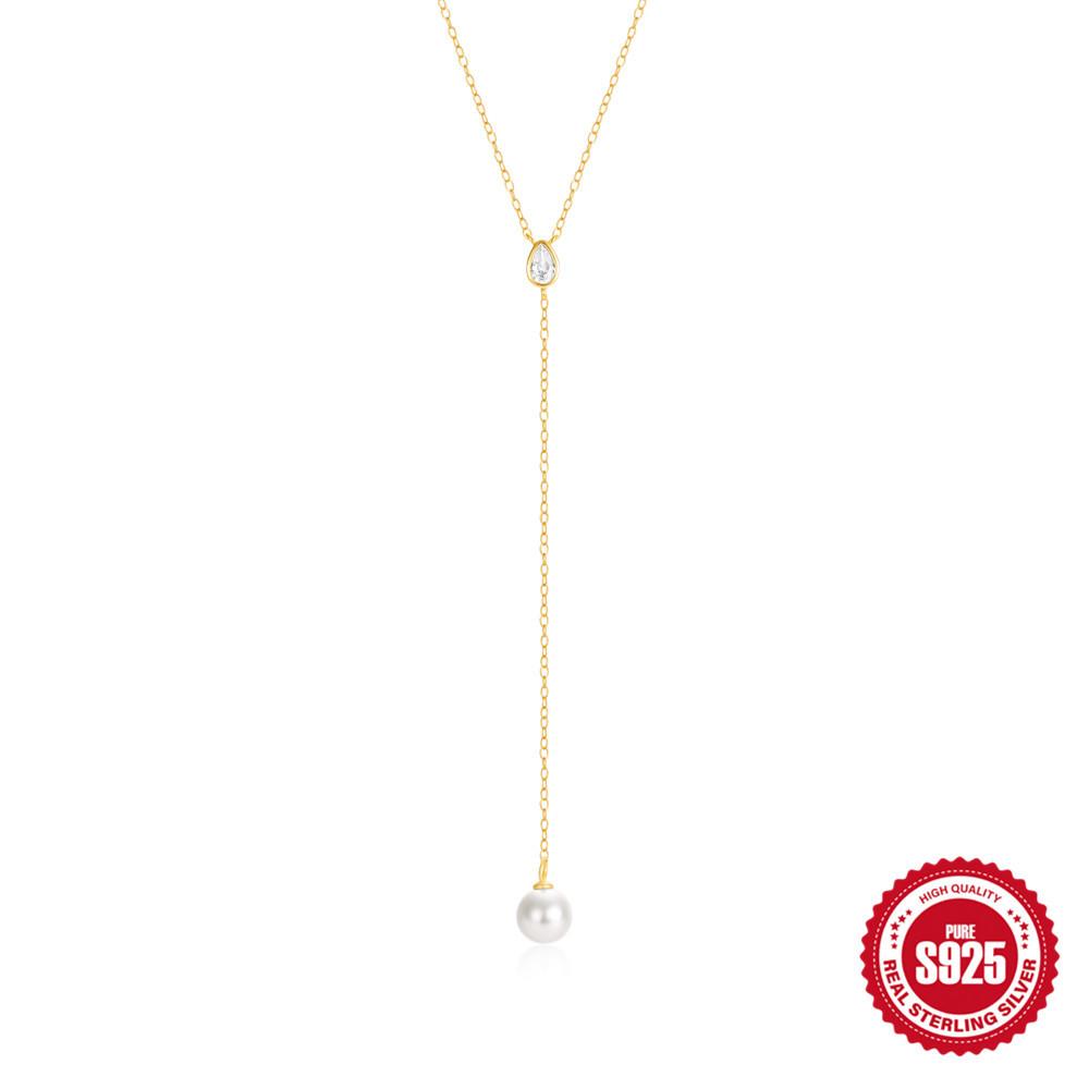 Стильное и простое женское ожерелье на ключицу из стерлингового серебра 925 пробы в форме буквы Y с бриллиантами и жемчугом — купить товар онлайн с бесплатной доставкой по всему миру!