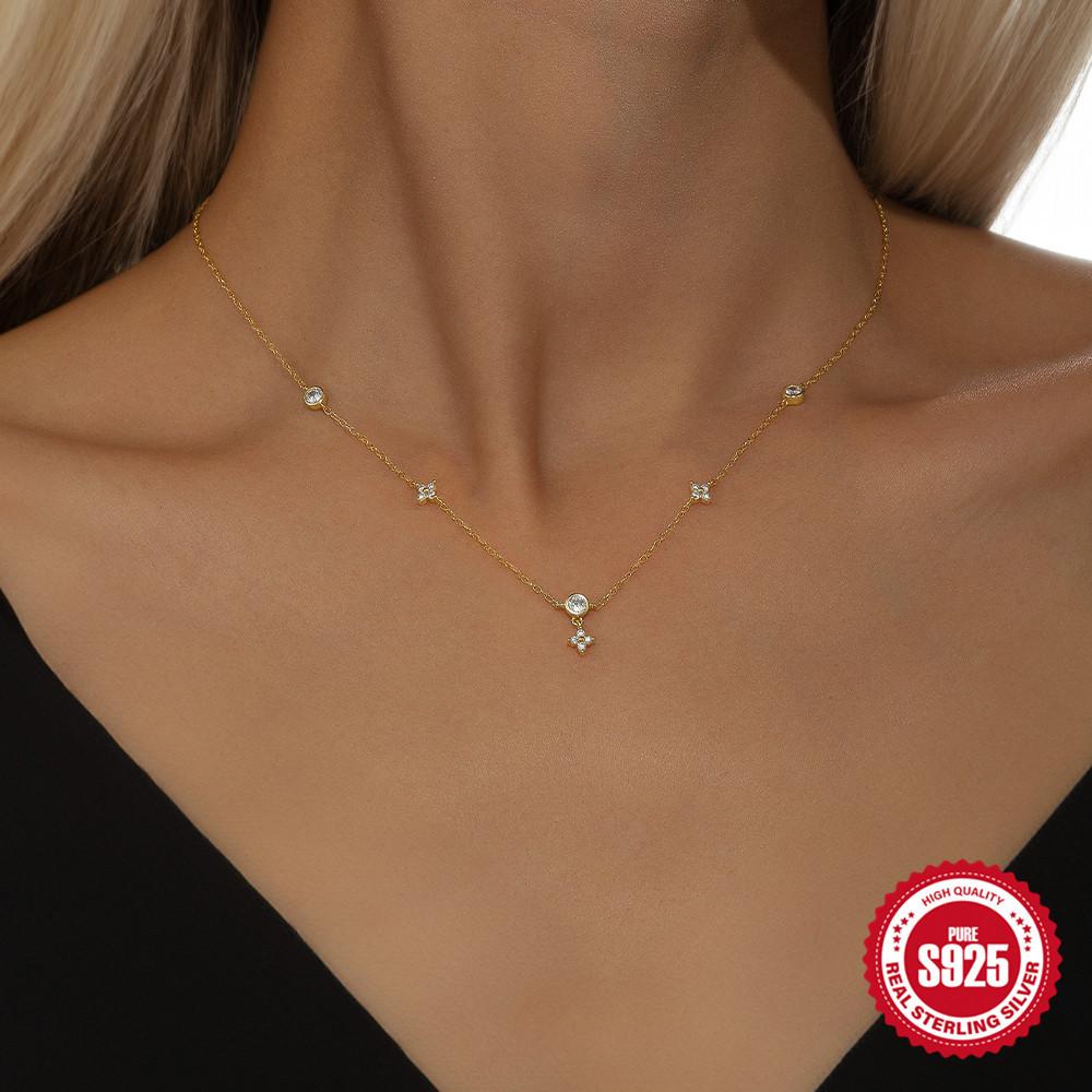 Мода S925 стерлингового серебра цветок бриллиант геометрический наборный износ наборный дамы ключица ожерелье для женщин
