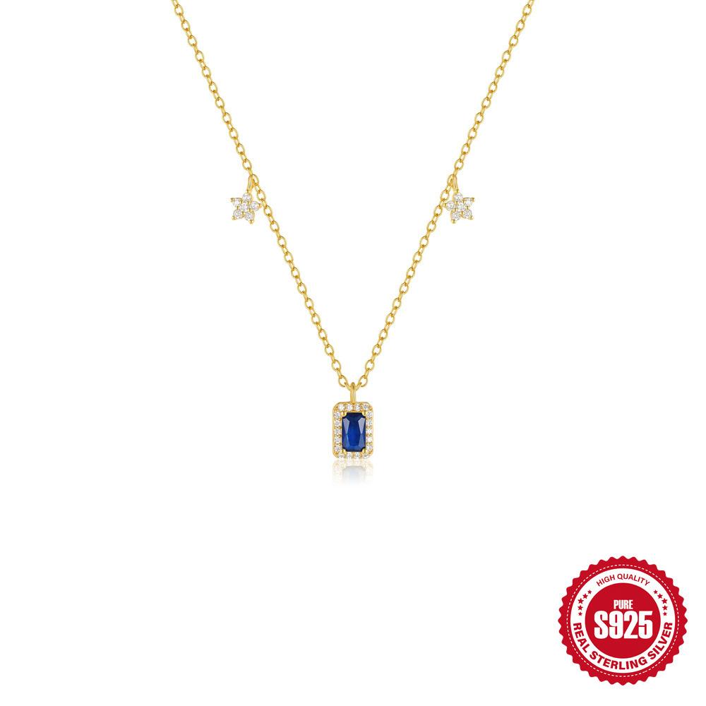 Стильное простое женское универсальное ожерелье на ключицу из стерлингового серебра S925 с сапфирами и бриллиантами в виде геометрических цветов