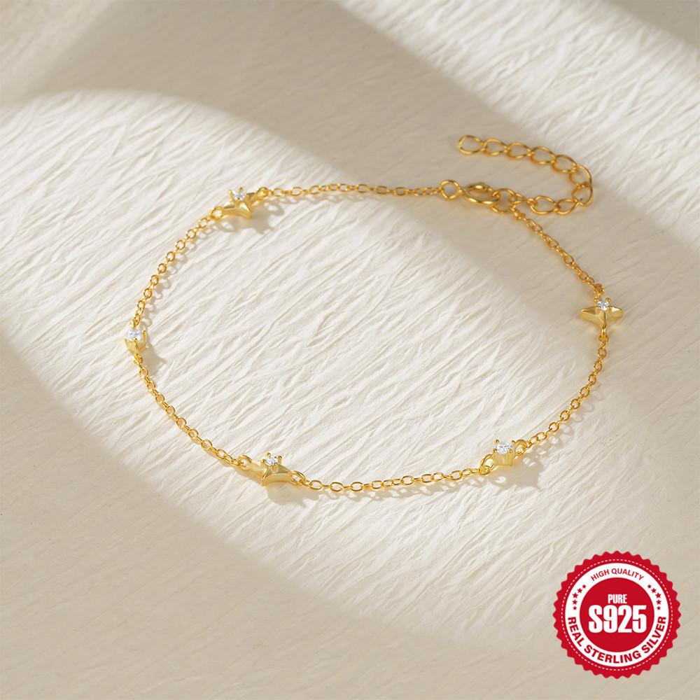 Стильный и простой браслет из стерлингового серебра S925 в виде четырехконечной звезды с бриллиантами, предназначенный для ежедневной носки и сочетающийся с женским браслетом.