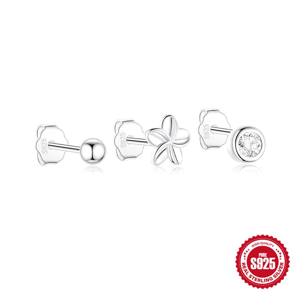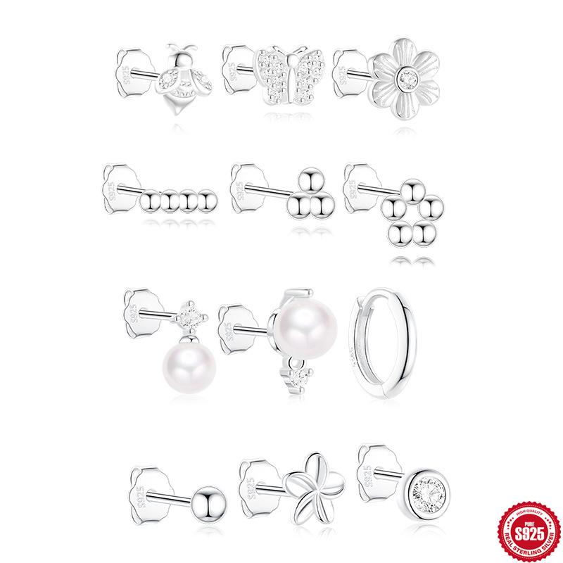 Серебряный Летний Комплект из Трех Предметов из Стерлингового Серебра 925 пробы: Пчела, Лепестки, Бабочка, Цветы, Жемчуг, Комбинация, Универсальные Серьги-Пуссеты