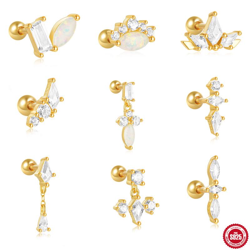 S925 Стерлинговое серебро Глаз дьявола Кошачий глаз Опал Опал Бриллиант Шар Пирсинг Резьбовой Гвоздик для уха Премиум