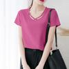 Женский летний топ 2024 года с V-образным вырезом, короткими рукавами, в корейском стиле, с перекрестным вырезом, однотонный